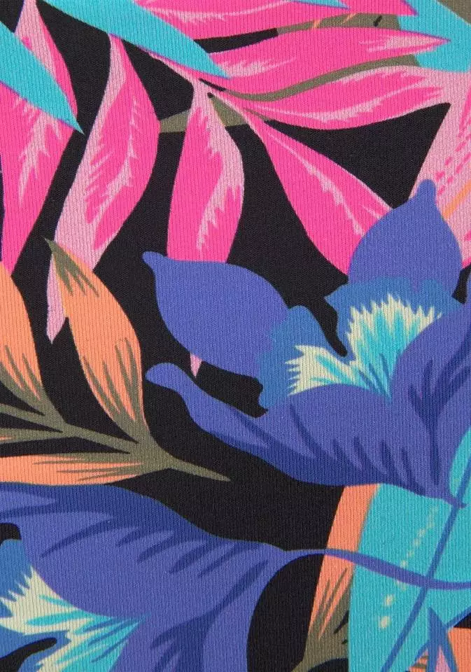 Von wegen Bräunungsstreifen sind out. Mit den seitlichen Bändern setzt die Bikinihose von Bench einen gelungenen Akzent in deiner Hüftpartie und lässt beim Sonnenbad schöne Muster auf deiner Haut entstehen. Gemixt wird die schmale Form der Panty mit einem floralen Print im Dschungelstil. Kleiner Tipp: Die farblich abgesetzten Bänder finden sich auch in manchen Bikinitops der Mixkiniserie wieder. Von romantisch bis praktisch kannst du dir nach Belieben dein Top für die Bikinihose von Bench aussuchen.
