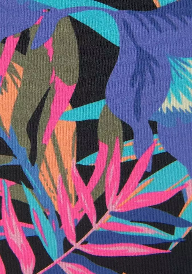 Bunt, dynamisch und flexibel – die Bikinihose von Bench hat einfach alles. Neben dem frischen Print im Urwald-Look und der weichen, funktionalen Qualität gibt sich die farbenfrohe Panty auch durch den kontrastfarbenen Bund sehr sportiv. Ein kleines, aufgesticktes Metall-Label ziert das Bündchen an der Seite. Ab ins kühle Nass, eine Runde Beachvolleyball spielen oder einfach ein gutes Buch unter dem Sonnenschirm genießen? Die Bikinihose von Bench ist mit am Start.