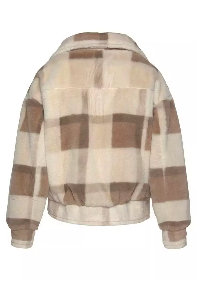 Flauschig-warmer Trendsetter, der in deinem Kleiderschrank nicht fehlen sollte: Die trendige Plüschjacke von Bench besteht aus dickem, kuschelig weichem Teddyplüsch und hält dich an kalten Tagen sehr warm. Der robuste Look der Jacke wird von dem großen Kragen, den auffälligen Pattentaschen aus der Brust und der durchgehenden Druckknopfleiste betont. Die modisch kurze Form mit dem eng anliegenden Bund sorgt in Kombination mit einer engen Jeans dafür, dass du in der Plüschjacke von Bench trotzdem schlank aussiehst.