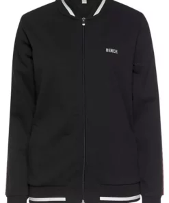 Bench. Sweatjacke mit glänzender Logostickerei am Stehkragen Schwarz, Ecru, Hellgrau-melange