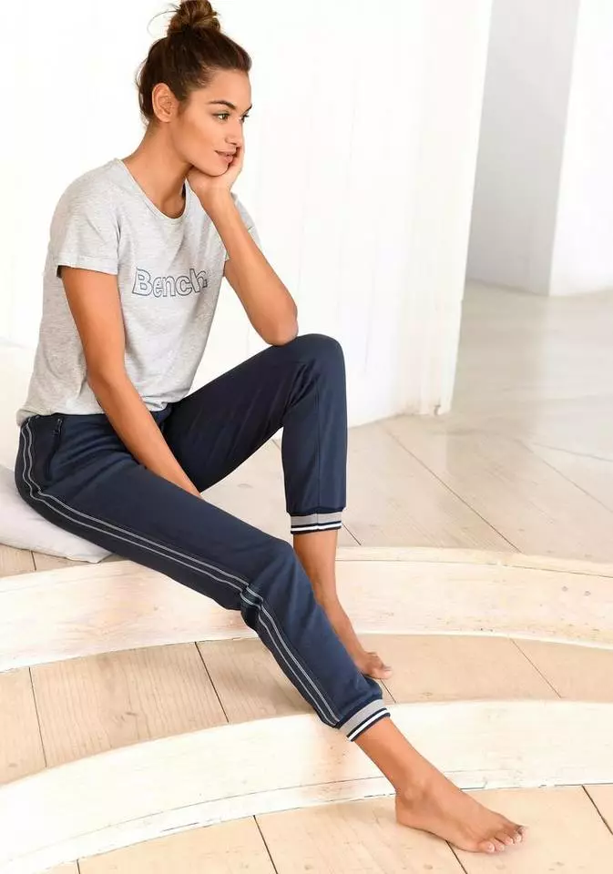 Schwing die Hüften: Ob auf der Tanzfläche oder deinem Sofa ist mit den Relaxpants von Bench ganz dir überlassen. Ein breites Labelgummi dient als Bund und macht jede Bewegung mit. Die Seitenstreifen strecken optisch das Bein und verleihen der gemütlichen Hose eine coole Note. Die langen, figurumschmeichelnden Hosenbeine werden am Saumabschluss von farbigen Strickbündchen leicht gekräuselt. In zwei Reißverschlusstaschen kannst du Hände oder Kleinigkeiten verstauen, während das superweiche Material sich kuschelig anschmiegt. Die Relaxpants von Bench sind zum Wohlfühlen gemacht.