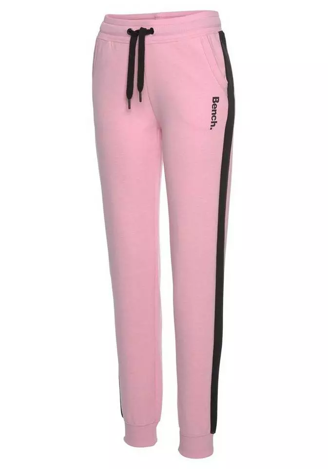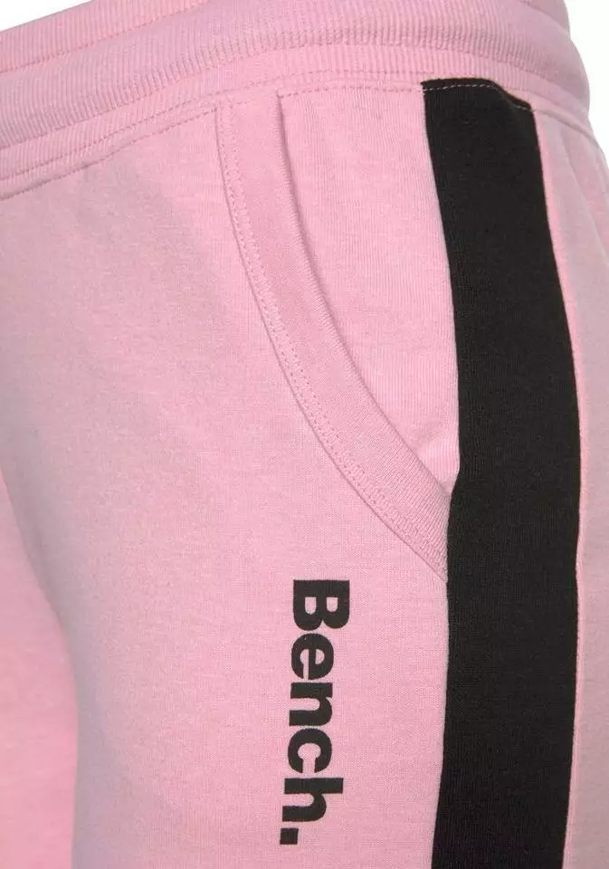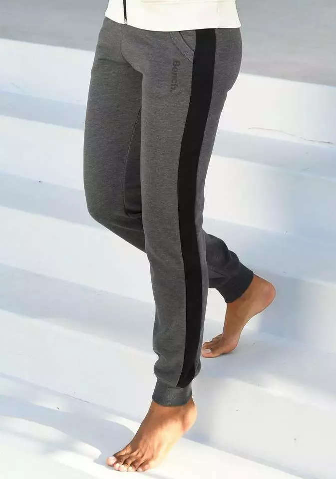 Hose an, Film ab! Die Loungehose von Bench eignet sich perfekt für eine lange Filmnacht, denn sie ist superbequem. Kontrastierende Streifen entlang der Seitennähte und ein kleiner Logodruck sorgen für eine hübsche Optik, ebenso wie die schmale Passform, die eine hübsche Silhouette zaubert. Komfort garantieren der gerippte Hosenbund mit Tunnelzug, der sich individuell auf dich und deine Bedürfnisse einstellen lässt, gerippte Beinabschlüsse und seitliche Eingrifftaschen. Der elastische Interlock-Jersey, aus dem die Hose gefertigt ist, setzt in Sachen Komfort noch einen drauf. Mit der Loungehose von Bench machst du auch auf dem Sofa eine tolle Figur!