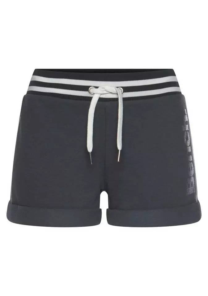 Bench. Sweatshorts mit Logodruck in Metalloptik Creme, Stein