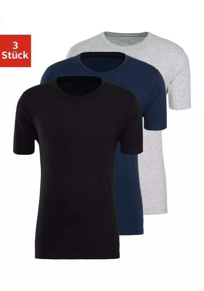Bench. T-Shirt (3er-Pack) super geeignet zum Drunterziehen, perfekte Passform, aus elastischer Baumwolle Weiß, Schwarz, Schwarz | navy | grau-meliert