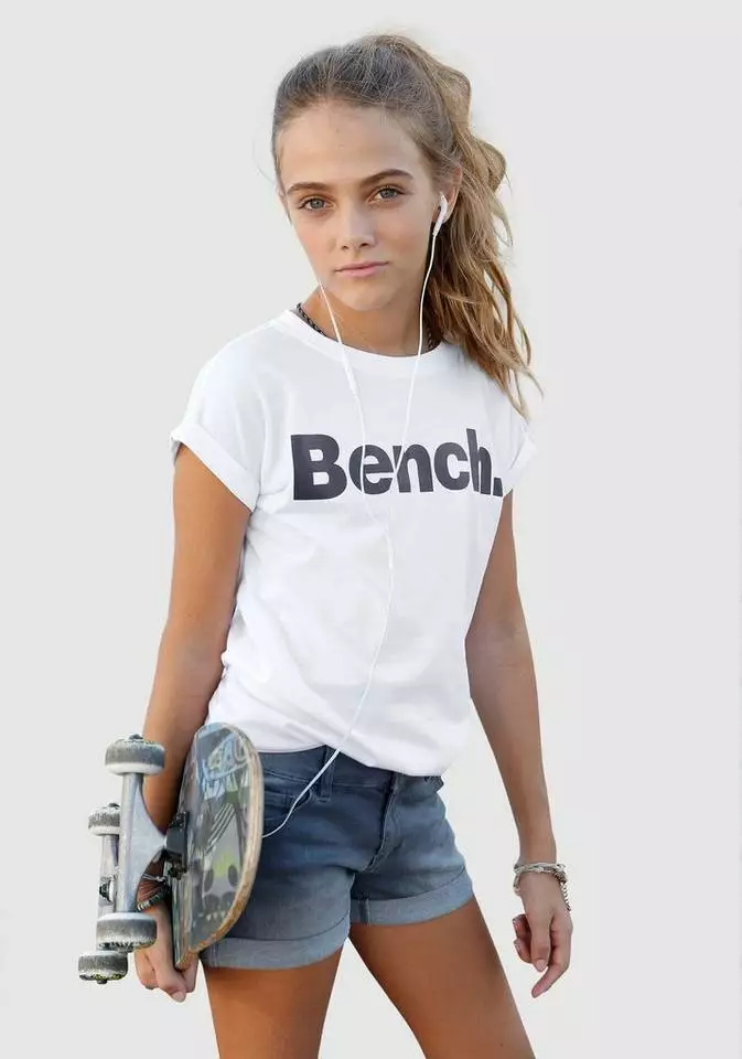 Das T-Shirt von Bench sorgt für frischen Wind im Kleiderschrank kleiner und großer Mädchen! Neben der klassischen Aufmachung mit Rundhalsausschnitt inklusive Bündchen und angeschnittenen Ärmeln mit gekrempeltem Saum, setzt das gerade geschnittene Mädchenshirt durch den plakativen Logodruck ein cooles Statement. Der weiche Jersey aus softer Baumwolle trägt sich sehr angenehm und erhebt das Basic-Tee ebenfalls zu einem idealen Sportoberteil. Ob zu Jeans oder Sweatpants – das T-Shirt von Bench geht immer!