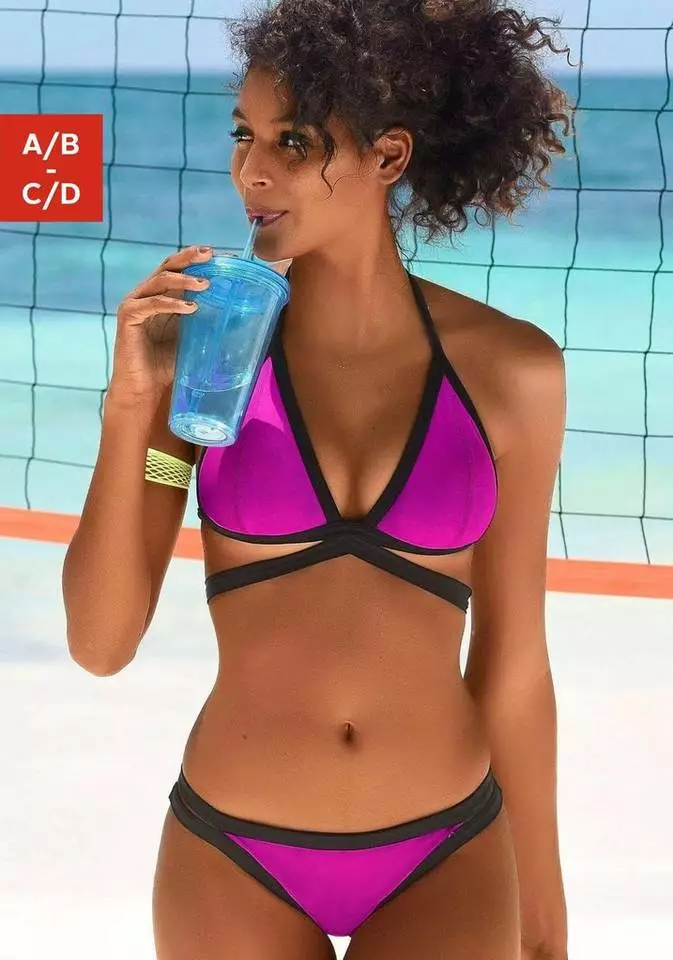Der Triangelbikini von Bench fällt auf! Die coolen Kontrasteinsätze ziehen die Blicke auf sich. Das zusätzliche Bindeband unter der Brust gibt dem Triangeltop zusätzlichen Halt. Die herausnehmbaren Cups entscheiden über mehr oder weniger Dekolleté. Die Neckholderträger werden im Nacken gebunden und am Rücken verschlossen. So lässt sich das Bikini-Oberteil nach Belieben einstellen. Die Bikinipants zeichnen sich durch die zwei breiteren Bänder aus. Immer cool und lässig gestylt – mit dem angesagten Triangelbikini von Bench. Obermaterial aus 80% Polyamid, 20% Elasthan. Futter aus 100% Polyester.