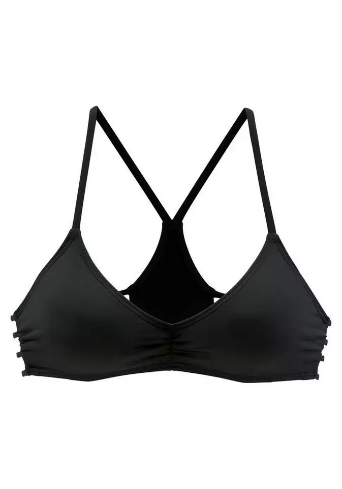 Natürlich schön, diesen Look hat das Triangeltop von Bench wirklich drauf. Mit feinen Raffungen an der Seite und am Ausschnitt sind die Triangelcups filigran im Bustierstil verarbeitet. Die schmalen Träger laufen im Rückteil zu einem angesagten Racerback zusammen. Auf diese Weise genießt du einerseits den guten Sitz eines sportlichen Bikinitops, hast aber andererseits auch viel Bewegungsfreiheit. Kleiner Tipp: Wenn du die feminine Machart betonen möchtest, kombiniere das Triangeltop von Bench doch einfach mit einem kurzen Pareotuch. Genial! Aus softer Microfaser.
