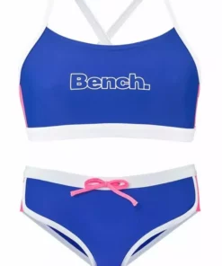 Bench. Bustier-Bikini mit gekreuzten Trägern Blau-weiß, Türkis-schwarz, Pink-schwarz, Schwarz-weiß